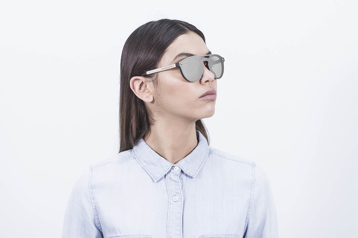 Armação policarbonato preto mate Lente W/6c cat.3 Smoke. UV100%. ATOM system. Cor das lentes prata espelhado Hastes metal dourado Proteção CE EN 1836. USA ANSI Z80.3.