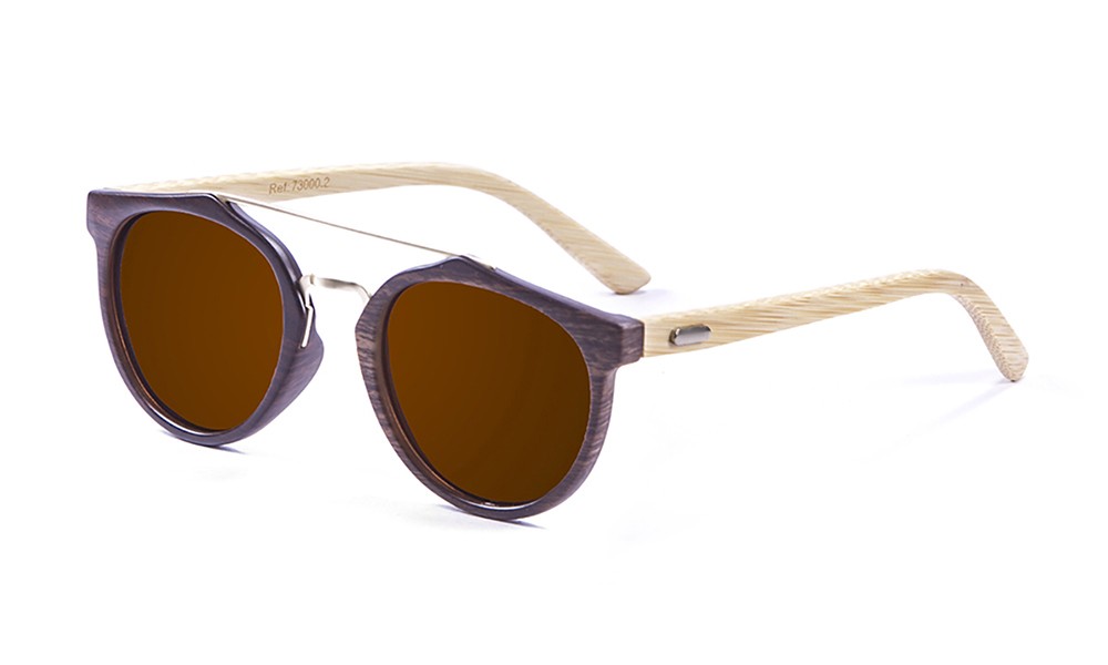 Armação castanho escuro Lente W/6C CAT.3 SMOKE. UV 100%. POLARIZED ATOM SYSTEM. NYLON LENS Cor das lentes castanho Hastes bambu Proteção CE EN 1836. USA ANSI Z80.3.