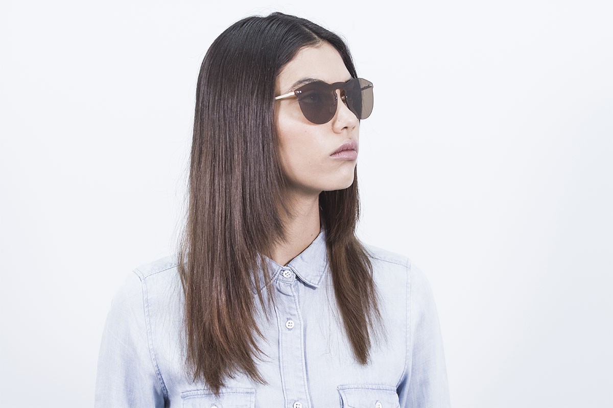 Armação castanho espacial Lente W/6c cat.3 Smoke. UV100%. ATOM system. Nylon lens Cor das lentes castanho espacial Hastes metal dourado Proteção CE EN 1836. USA ANSI Z80.3.